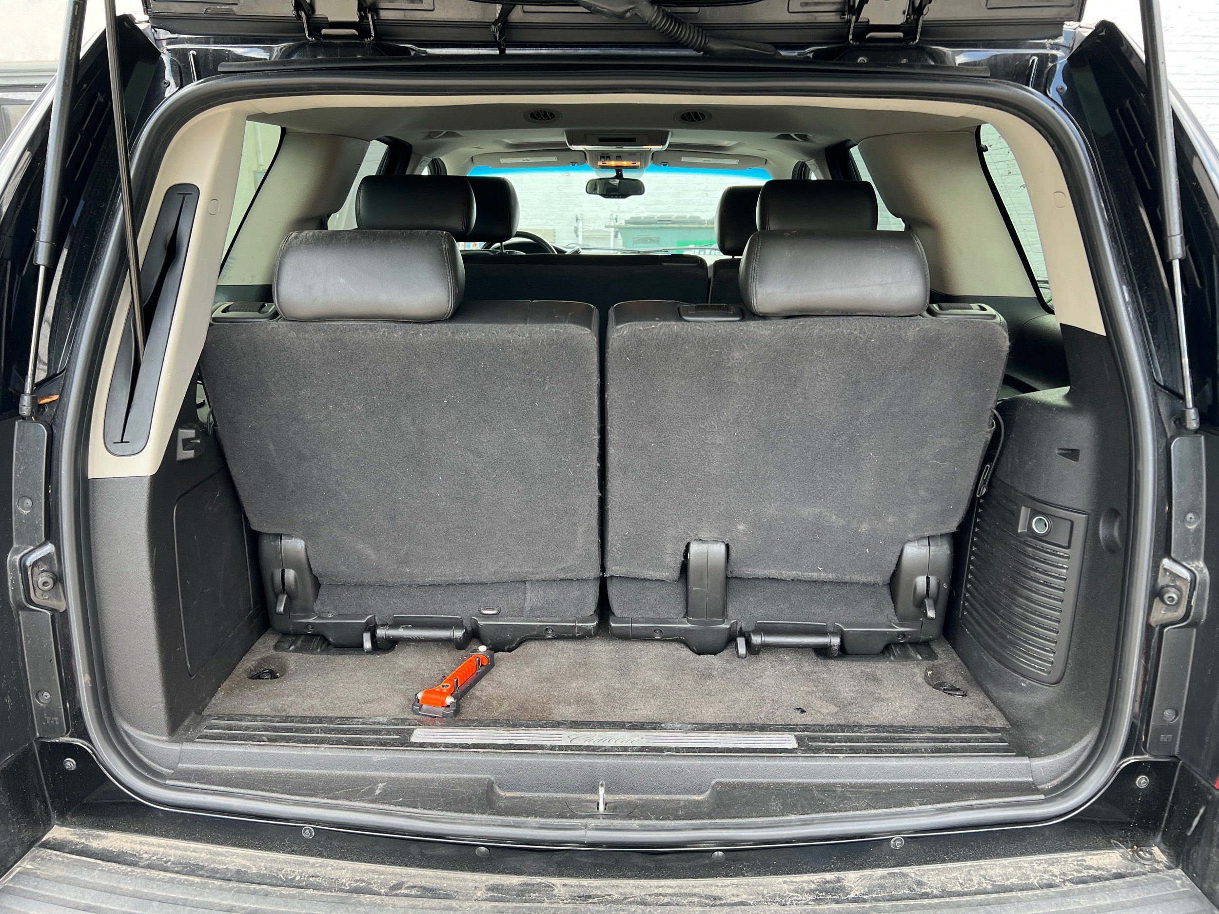 Third-row seatback upholstery: Carpet third-row seatback upholstery